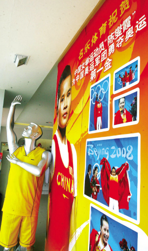 記者了解到,僅僅一天時間,名樂全國1600多家專賣店全部掛起了紅色祝賀條幅,內容為“熱烈祝賀中國女子舉重隊為中國08奧運軍團勇奪第一金”,同時名樂所有的戶外廣告也在短時間內換上了“名樂體育———中國舉重隊08奧運官方合作伙伴”的最新廣告。