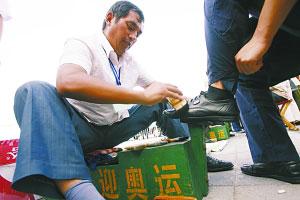 “我會堅持,劉翔也要堅持。”侯現(xiàn)中滿懷信心地說完這句話,就坐回到小馬扎上繼續(xù)等待擦鞋的客人。在他眼里,在街邊為路人免費擦鞋和競技場內(nèi)獲得獎牌一樣榮光,這就是他能為奧運做出的一點微薄貢獻。