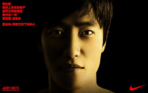 記者看到,該廣告占據報紙整整半版,黑底紅字并配上劉翔嚴肅的頭像,給人第一印象相當沉重,6排紅色的廣告詞更像惆悵的詩句——“愛比賽;愛拼上所有的尊嚴;愛把它再贏回來;愛付出一切;愛榮耀,愛挫折;愛運動,即使它傷了你的心。”