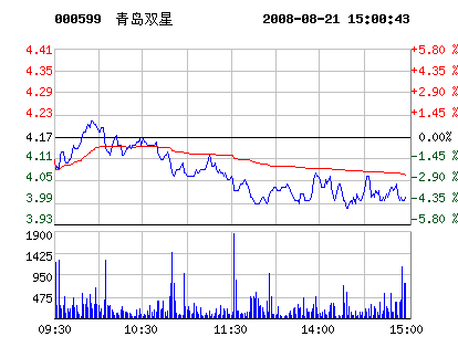 昨收:4.17 今開:4.09 成交:52,416 最高:4.21 最低:3.95 均價:4.04 市盈率:19.85 流通:3.71億 市值:20.84億元 換手:1.41% |