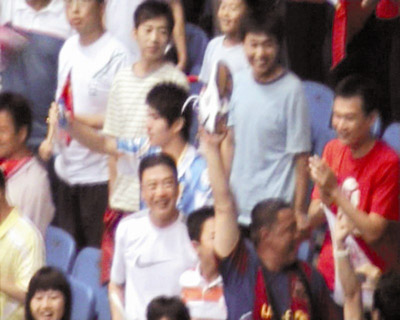 從小吳拍攝的視頻來看,林丹面對觀眾席,先后脫下了右腳和左腳的鞋,然后奮力用左手將右腳的鞋扔向了觀眾。由于扔鞋的方向正好在小吳側面一點,他并沒有拍到撿鞋的場面。不過,隨后林丹拿著左腳的鞋跑向了觀眾席的另一側,這次小吳可沒錯過,他的鏡頭緊緊跟著林丹,在鞋扔出后,小吳的鏡頭也對準了鞋的落地處,在一陣忙亂之后,那只鞋在一只手的高舉之下重新出現,然后一個滿溢著笑容的中年男子出現在鏡頭之中,他就是那個撿到林丹一只鞋的人。