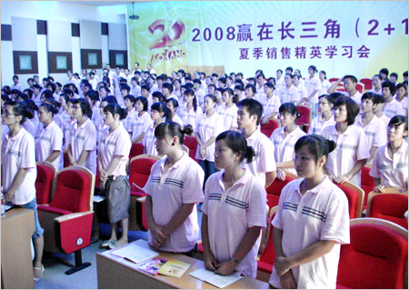 8月21日,為期四天的奧康集團“2008贏在長三角(2+1)夏季銷售精英學習會”在溫州大學正式拉開序幕。來自上海、寧波、溫州三地200多名一線終端管理人員暫別繁忙的終端銷售工作,參加了這次特殊的培訓學習會。