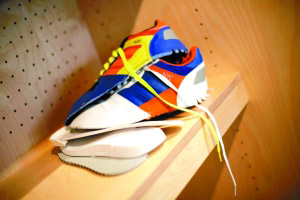 屏幕前的地面上有一條約兩米的“跑道”,赤足跑過“測試區”兩次后,屏幕上就會出現測試者雙腳的結構和受力圖,店員會利用測試數據分析出測試者在運動時足部的受力方向和受力是否均勻。如果足部受力外翻,定制時應選擇“控制型”,如果是內翻,就要選擇“緩沖型”。足部受力測試后,店員會抽出一個專業測量器,踩在上面會為你測出精確的腳長和腳寬,你可能會發現自己的右腳居然比左腳長出不少,連寬度都不一致。這時,店員會根據以上數據,拿出幾款鞋楦,通過多次試穿,最終確定一款屬于你的Mr.Right運動鞋。