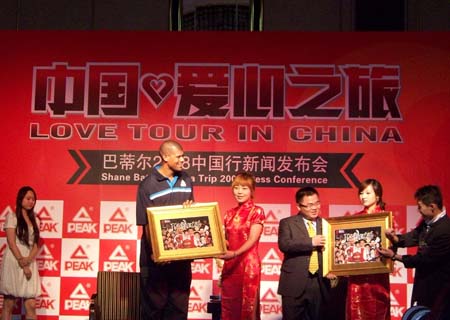 在“巴蒂爾08中國愛心之旅”的新聞發布會上,匹克總經理許志華致詞宣布“巴蒂爾08中國愛心之旅”在北京正式啟動。巴蒂爾也用中文向現場的嘉賓朋友們問好,并表示:“在5月份得知四川發生了7.8級的大地震后,我的內心非常沉痛,我一直都希望能親自到四川去,為那里的人民做一些事!此次中國行將會被賦予新的內涵,除了與球迷見面、拍攝廣告以外,我將前往四川成都,為四川的災后重建貢獻自己的一份力量,并與匹克一起為四川的孩子們捐贈一批價值20萬元的體育器材,以幫助青少年們健康自信地成長。我也希望更多的球迷朋友們一起加入我們的愛心活動,讓四川人民過上幸福的生活!