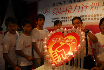 “我承諾,自愿加入愛心接力活動,自立自強,誠實守信,用愛心傳遞真情,在完成學業參加工作后,至少要幫助一名貧困學子,回報社會。”9月17日,在安徽全椒縣舉行的,主題為“善行天下 情灑江淮”的王振滔慈善基金會“愛心接力計劃”安徽站啟動儀式上,208名受助大學生在領到4000元助學金后,還簽訂了一個特別的愛心承諾書。