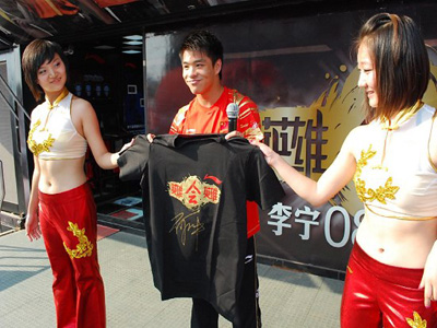 何沖助陣李寧大篷車 美女展示幸運T恤衫