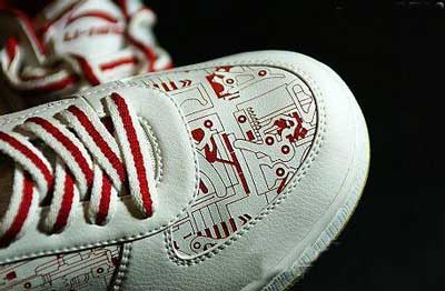 鞋身的LASER來自游戲機(jī)的電路板結(jié)構(gòu)。