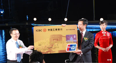 中國工商銀行浙江省分行行長助理宋關昶(chǎnɡ)先生與海寧中國皮革城股份有限公司副總經理 李宗榮先生共同啟動工商銀行牡丹海寧中國皮革城聯名卡