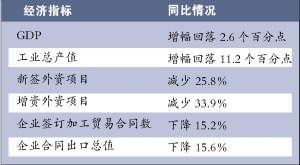 昨天,東莞市領(lǐng)導(dǎo)干部會議對目前東莞的經(jīng)濟(jì)形勢進(jìn)行了全方面的分析,在國內(nèi)外不利形勢的影響下,今年以來東莞兩大經(jīng)濟(jì)指標(biāo)出現(xiàn)下滑,其中GDP同比回落了2.6個百分點(diǎn),工業(yè)總產(chǎn)值同比回落了11.2個百分點(diǎn),引起各界的高度關(guān)注。