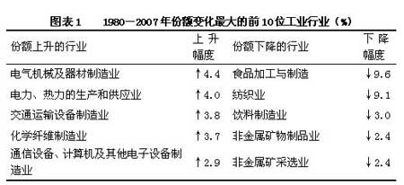 資料來源:第二次工業(yè)普查和2007年統(tǒng)計(jì)年鑒。注:為便于比較,部分行業(yè)作了歸類調(diào)整,如將通用設(shè)備制造業(yè)視同過去統(tǒng)計(jì)中的普通機(jī)械制造。