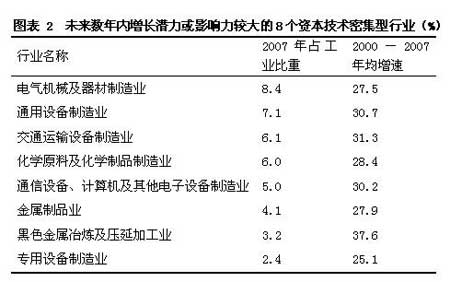 (二)附加值相對(duì)高的行業(yè)或?qū)⒄紦?jù)工業(yè)結(jié)構(gòu)中的優(yōu)勢(shì)地位。高加工度化和附加值相對(duì)較高的行業(yè)將成為浙江工業(yè)經(jīng)濟(jì)快速增長(zhǎng)的主要貢獻(xiàn)者。據(jù)統(tǒng)計(jì)分析,新世紀(jì)以來的頭7個(gè)年份,對(duì)浙江工業(yè)增長(zhǎng)貢獻(xiàn)度最大和影響力最大的前10個(gè)行業(yè),除了傳統(tǒng)的紡織等行業(yè)之外,其余的電氣機(jī)械、電力、通用設(shè)備等8個(gè)行業(yè)全部屬于資本或技術(shù)相對(duì)密集型行業(yè)。雖然紡織等行業(yè)對(duì)工業(yè)發(fā)展的貢獻(xiàn)度較大,但相比2000年,紡織、紡織服裝、皮革等行業(yè)占工業(yè)比重有較大幅度下降,其增長(zhǎng)空間接近頂部。與此相反,電力、電氣機(jī)械、通用設(shè)備、交通設(shè)備、通信電子、金屬冶煉等行業(yè),不僅對(duì)近年來浙江工業(yè)發(fā)展的貢獻(xiàn)度較大,而且比重有較大幅度上升,逐步占據(jù)浙江工業(yè)主導(dǎo)地位。