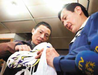 馬英九腳上的舊鞋“從選市長穿到現在”,“鞋齡”超過十年,馬英九笑稱,“這雙鞋還能跑馬拉松”。