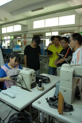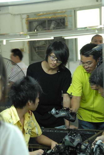 原來,擔(dān)任“深圳衛(wèi)視號”泉州名譽(yù)船長的韓寒登陸泉州后,一方面對泉州的古老文化甚感新鮮,另一方面,韓寒又早已耳聞大名鼎鼎的泉州鞋業(yè)。所以,韓寒帶領(lǐng)“深圳衛(wèi)視號”攝制組在拍攝完泉州古老的清凈寺后,便直奔泉州鞋業(yè)的代表品牌——匹克鞋業(yè)。韓寒不但參觀了匹克鞋業(yè)的生產(chǎn)線全過程,而且親自走上生產(chǎn)線,在匹克師傅的指導(dǎo)下,自己成功制作出了一雙運(yùn)動鞋。