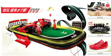 繼奧運(yùn)期間的“北京見(jiàn)”活動(dòng)之后,9月15日開(kāi)始,不甘寂寞的PUMA又開(kāi)展了“F玩”活動(dòng),在持續(xù)一個(gè)半月時(shí)間的活動(dòng)中,只要在PUMA(中國(guó))的網(wǎng)站上注冊(cè)登錄,就可以挑戰(zhàn)“上海站”虛擬F1賽車游戲,還能單挑Linkin Park玩搖滾。較之前的PUMA“北京見(jiàn)”活動(dòng),此次F玩在營(yíng)銷推廣上更注重受眾定位和營(yíng)銷推廣手段的應(yīng)用,于受眾的游戲體驗(yàn)中,PUMA將品牌進(jìn)行了全面展示。有人把這種“制造商和消費(fèi)者進(jìn)行有效品牌互動(dòng)溝通”的活動(dòng),稱為消費(fèi)者體驗(yàn)。