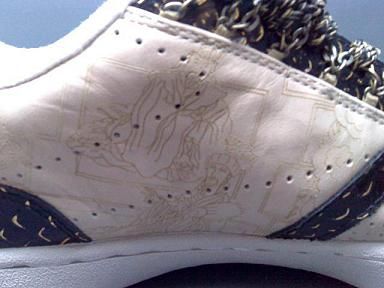 全鞋采用高檔的真皮材質(zhì),并運用鐳射工藝。