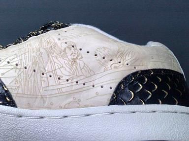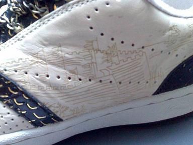 全鞋采用真皮,并用鐳射技術(shù)鐳射出火燒赤壁的智慧人物--諸葛亮