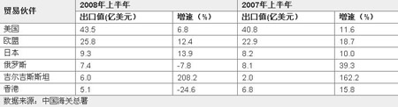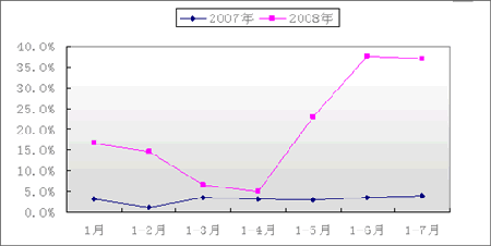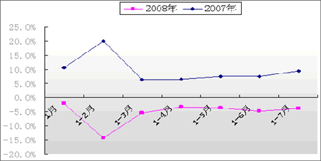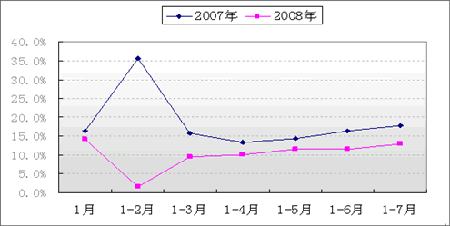 圖1-8 2008年1-7月鞋類出口數據同比增長趨勢比較