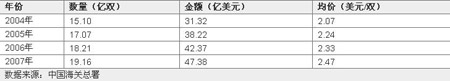 表1-10 2004-2007年鞋類出口福建口岸出口數(shù)據(jù)
