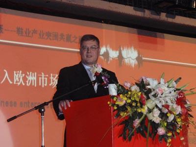 其實已經有很多中國的鞋子在歐洲進行銷售,在此我謹代表歐洲鞋業零售商聯盟表示感謝,我們歐洲鞋業零售商聯盟包括500家零售商,同時我們的零售商來自意大利、西班牙等地,我很高興能來到如此美麗的中國,并且給我這樣的機會,通過世界鞋業發展論壇看到如此多的行業精英聚集于此。我希望各位在我的演講中有所收獲,這樣回去之后你也可以以此為指導,知道我們如何更專業的建立中歐或者歐洲的商業往來。