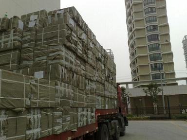 圖為裝載完畢,準備發(fā)往青藏的奧康皮鞋