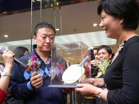 剪彩儀式后的奧運冠軍簽售環節掀起本次活動的高潮。經過多年打拼終于得償所愿的馬琳深受人們喜愛,簽售一開始就被圍得水泄不通,大家爭相一睹冠軍的風采,在布滿球衣、球鞋、張貼巨幅運動明星賽場英姿的體育店堂里,現場仿如體育愛好者的盛大派對,氣氛融洽而熱烈。
