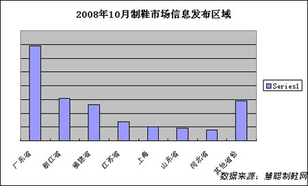 信息發布的區域里,廣東、浙江、福建、江蘇仍是從事制鞋交易的最活躍地區。與9月不同,上海、山東、河北代替了河南、四川成為較為活躍的省份。
