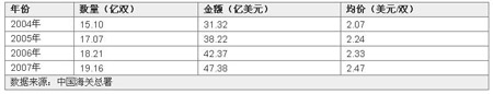 表1-10 2004-2007年鞋類出口福建口岸出口數據