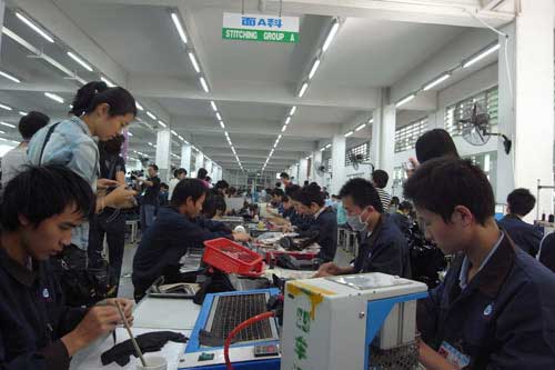 華堅集團旗下的一個生產廠的四車間看到,這個車間仍在滿負荷生產。工人們為完成生產任務顯得十分忙碌。有趣的是,這條生產線上現在的工人多數是小伙子了,外來妹所占的比重反而不多了。