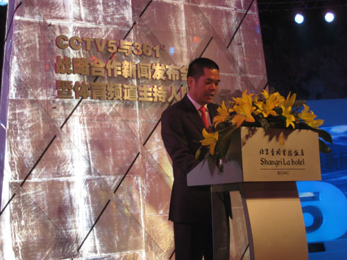 11月28日,CCTV5與361度(中國)有限公司在北京香格里拉酒店舉行了隆重的簽約儀式。2009年1月1日起,CCTV5所有主持人及出鏡記者都將穿著361度公司提供的服裝。作為中國創(chuàng)辦最早、規(guī)模最大、擁有世界眾多頂級賽事中國大陸地區(qū)獨家報道權(quán)的專業(yè)體育頻道,中央電視臺體育頻道與361度公司共同攜手,以全新形象展現(xiàn)在世界面前。中央電視臺體育頻道總監(jiān)江和平和361度(中國)有限公司總裁丁伍號先生共同出席了新聞發(fā)布會。