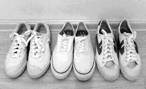 這是上世紀80年代初的一幕,從上世紀的70年代到80年代初,球鞋一直是“飛躍”、“回力”和“雙錢”的天下,一位現在還在堅持穿飛躍球鞋的老人回憶,80年代初穿飛躍球鞋就是貴族,每天把鞋擦得很白,一點塵都不沾,這種愛干凈甚至被認為是“輕浮”。“一雙鞋能穿兩年,除了底兒有磨損,沒有任何污漬和壞的痕跡。”