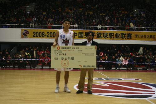 12月5日,在遼寧隊主場紅運體育館,安踏公司將5萬元現金交到遼寧盼盼俱樂部手上。安踏公司表示這筆善款將捐助給身染重病的遼寧運動員王屾用于手術治療,并且期待他能早日戰勝病魔,重新回到籃球場上。