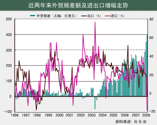商務部11月19日發布的2008年秋季《中國對外貿易形勢報告》預計,2008年全年中國商品進出口總額將達到2.6萬億美元,增長20%左右。但該報告同時指出,世界經濟增長放緩不可避免地拖累國際貿易增長,2009年可能成為近年來世界經濟貿易最為低迷的一年,不確定因素也會繼續增加。
