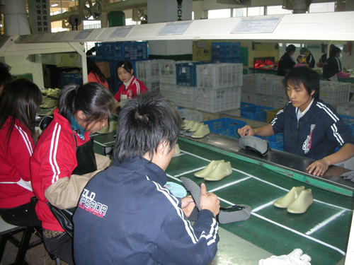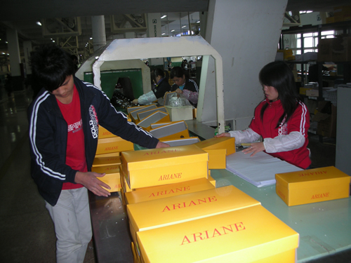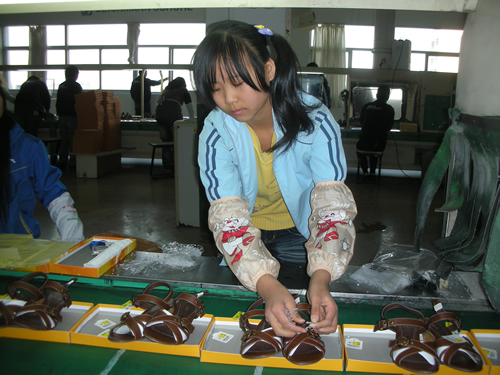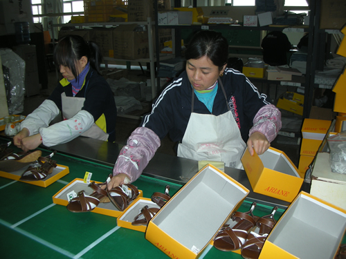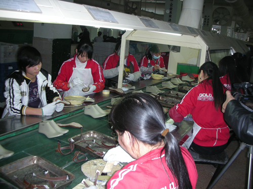 溫州勞動密集型的制鞋企業(yè)“金帝”公司依靠國際大鱷接訂單,生產(chǎn)仍保持飽和。新華社記者許群攝a