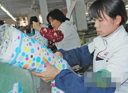 位于嵊州市經濟開發區的嵊州佰利鞋業有限公司,是專業生產出口橡膠雨靴及旅游鞋、時裝鞋的企業。由于歐美等國家和地區需求增加,該公司目前已達到日產三千雙的產量,員工也比去年同期增加了100余名。圖為該企業員工正在生產出口雨靴。