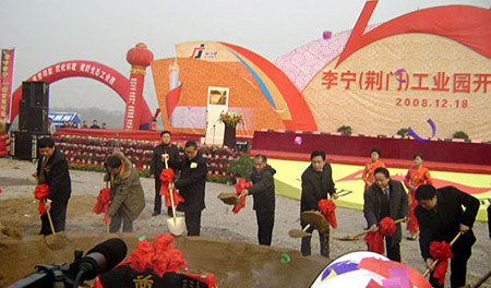 18日上午,湖北省委副書記,省長李鴻忠宣布,李寧(荊門)工業園正式開工,并與李寧揮鍬鏟土為項目奠基。