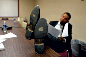 奧巴馬在總統選戰期間被《時代》周刊記者拍到兩只鞋的鞋底都磨出破洞的照片。照片成為奧巴馬競選總統的經典照片,并被放入其競選宣傳片,在網上流傳。