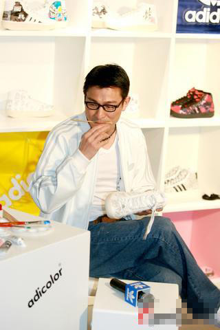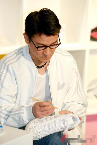 劉德華在鞋上畫畫,增加產品附加值,天王不光會唱歌,繪畫水平也不是蓋的。