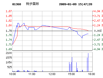 鞋企股市:1月9日特步國際股票行情走勢