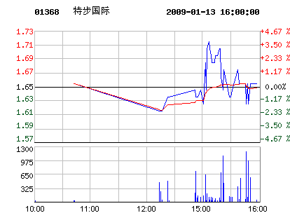 鞋企股市:1月13日特步國際股票行情走勢