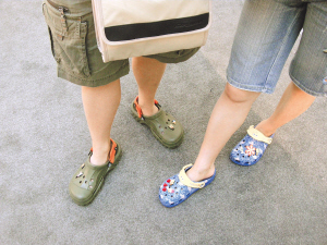 回過(guò)頭來(lái)看看現(xiàn)在年輕人的腳下,Crocs小丑鞋可謂是一個(gè)典型。它的流行速度完全可以和當(dāng)年松糕鞋相媲美,也是“忽如一夜春風(fēng)來(lái)”的勢(shì)頭,大街小巷男女老少的腳變成五顏六色的大腳板。可惜,如今無(wú)論什么元素,都不可能保持一連3年的流行元素了。層出不窮的鞋類(lèi)款式,很難再有松糕鞋那樣頑強(qiáng)的生命力。