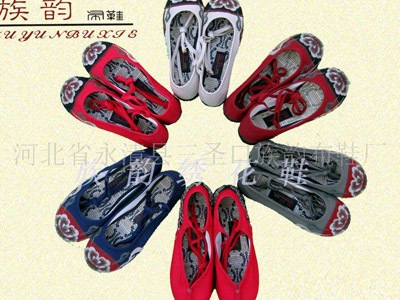 *族韻繡花鞋在鞋類大家庭中,鞋文化與刺繡藝術完美結合是華夏民族獨創的手工藝品,這種根植于民族文化中的生活實用品被世人譽稱“中國鞋”。有著很廣闊的市場前景。