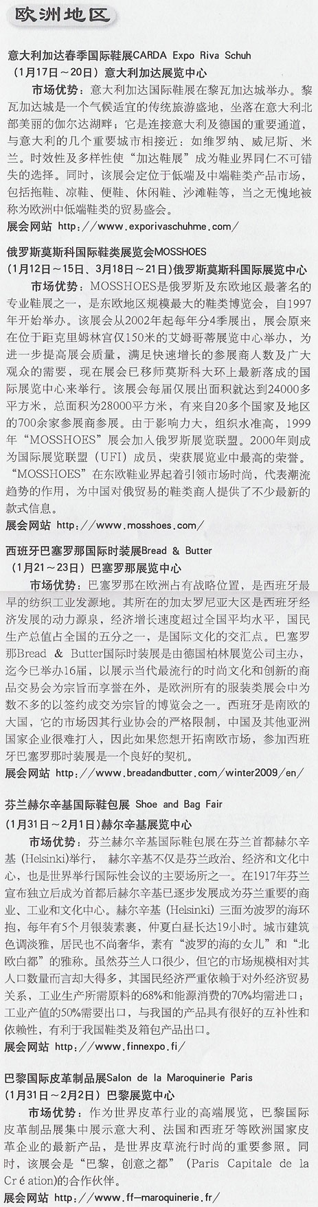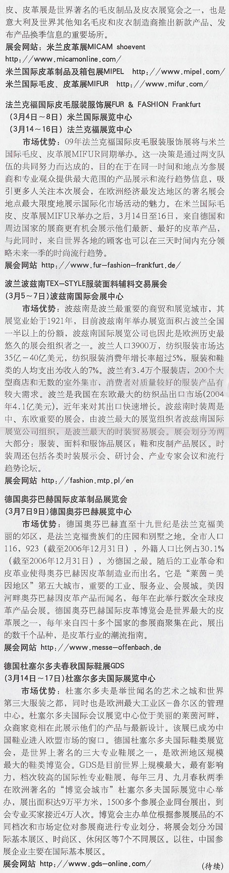 2009上半年海外鞋革展會詳解(歐洲)