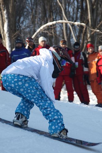 來帽兒山參加單板爭霸賽的捷克選手瓦茨拉夫告訴記者,由于單板項目設有很多分項,所以選手們穿的鞋子也不同,“像我們參加爭霸賽項目的選手,以及空中技巧、U形槽項目的選手穿的都是里外皆軟的鞋,這便于我們在空中做出各種動作,而硬的鞋子會限制我們完成必要的動作和難度”。