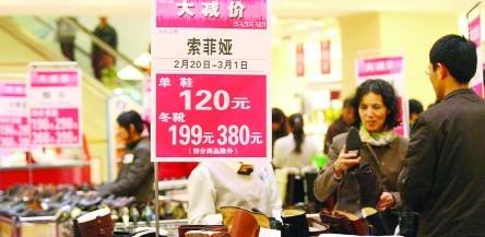 22日,在青島香港中路附近的一家商場內,不少商家將舊款的鞋子拿出來特價銷售,優惠的價格讓不少市民駐足挑選。由于春季新款已經開始陸續上市,原本柜臺上展示的舊款商品不得不降價促銷。