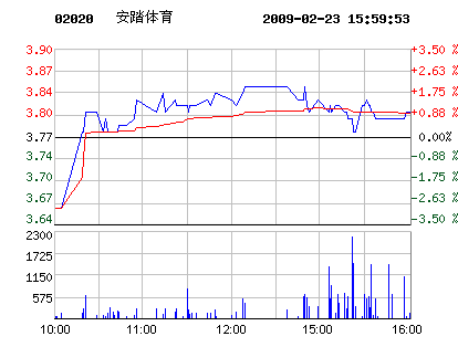 鞋企股市:2月23日安踏體育股票行情走勢