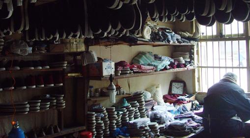 盡管老李的門面不起眼,但停在門前的車子都是很亮眼的。老李不懂車,只知道奔馳、寶馬這幾個叫得最響的牌子。“多數都是開車來的,現在還是城里人喜歡穿布鞋。”老李認為城里的有錢人都選擇穿布鞋,不是因為布鞋舒服,那是因為什么呢?