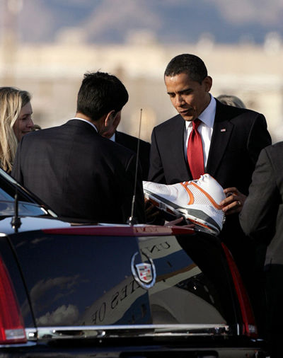 奧巴馬試穿鯊魚戰(zhàn)靴 李寧鞋現(xiàn)美國(guó)政壇