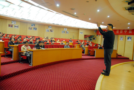 在培訓中,王振權根據多年的營銷實踐,提出了“打折不等同促銷”、“采購須科學計劃執行”等觀點,并通過實際案例、互動方式等展開分析,贏得了在場學員的熱烈歡迎。