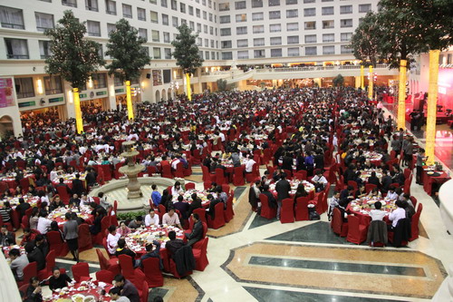 2009年2月23日,在催人奮進的歌聲、掌聲、歡呼聲中慶功宴的表演拉開了帷幕,觥籌交錯、推杯換盞,現場氣氛一浪高過一浪,歡聚一堂的特步人慶祝此次訂貨會的圓滿成功及大豐收。最后在丁總催人奮進的歌聲中,本次訂貨會劃上了圓滿的句號。