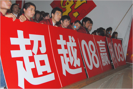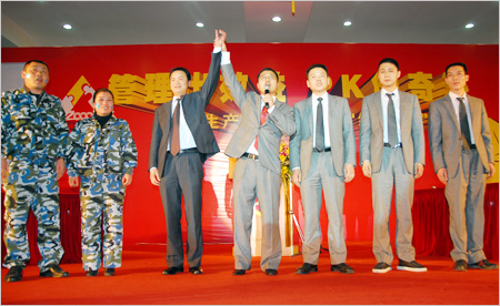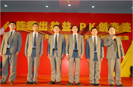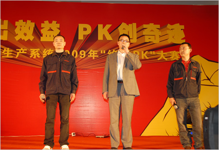“生產大舞臺,有我更精彩!”在眾人的齊聲吶喊中,2009年奧康鞋業制造有限公司、甌北鞋業制造中心、重慶紅火鳥鞋業有限公司三大生產系統“管理出效益 PK創奇跡”絕對PK大賽正式上演。集團總裁王振滔與其他高管出席了大賽。
